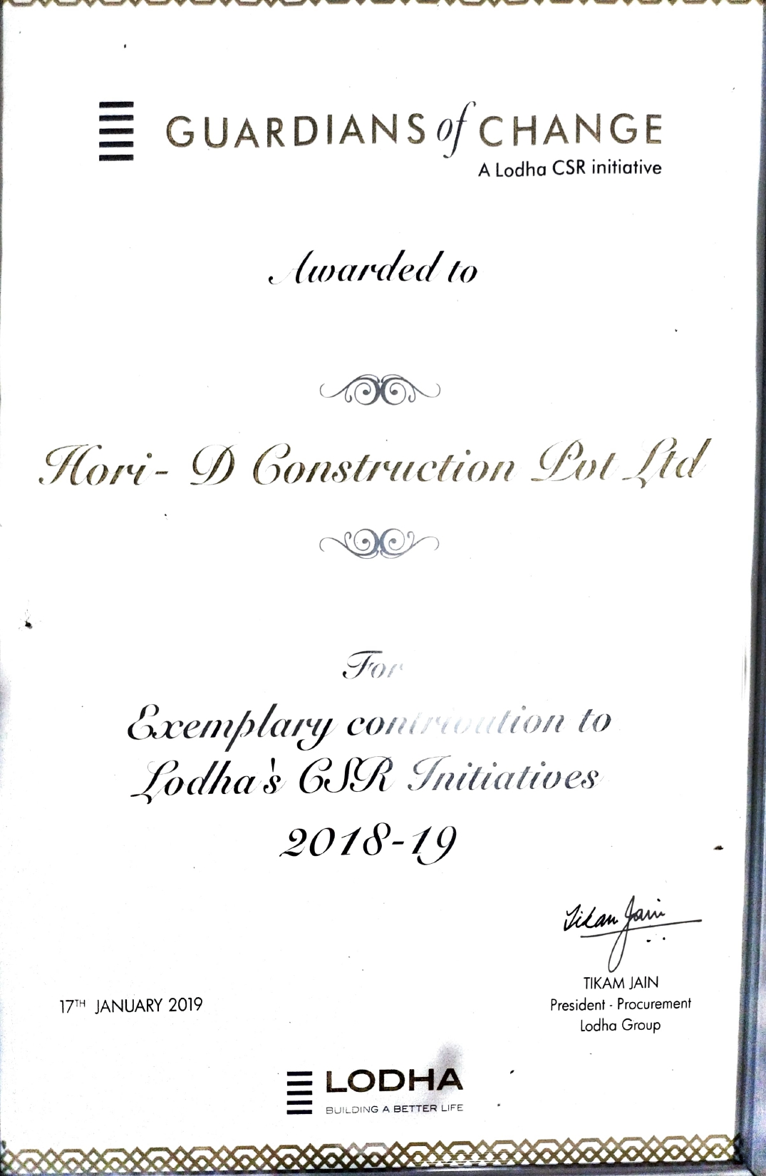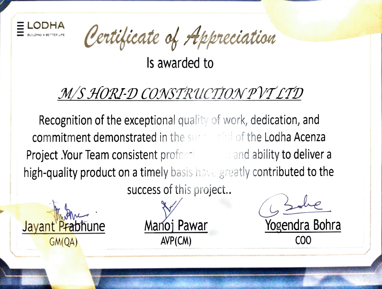 We have earned several recognitions since our inception. However, we pride ourselves not on account of our turnover but on our commitment to construction quality.
